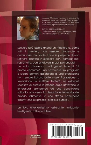Scrivere può essere anche un mestiere e, come tutti i mestieri, non sempre piacevole e comunque mai facile. Ecco le peripezie di uno scrittore frustrato in difficoltà con i familiari ma, soprattutto, contestato dai propri personaggi. Un volo attraverso molti generi letterari "di pronto consumo", una cavalcata tra pregiudizi e luoghi comuni da sfatare di una professione non sempre ispirata dalle muse. Frustrazione su frustrazione, lo scrittore tenterà tra esilaranti sconfitte di curare le proprie ansie attraverso la letteratura, giungendo ad una conclusione soltanto attraverso la descrizione letteraria del proprio fallimento, in una strana costruzione "liberty" che è il proprio "profilo d'autore". Un libro intelligente, divertente, intrigante, esilarante! (EDIZIONE COPERTINA RIGIDA)
