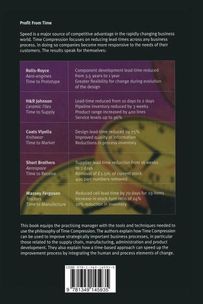 The search for speed has become the latest initiative in the pursuit of competitive advantage. This book equips the practising manager with the tools and techniques needed to utilise the philosophy of Time Compression. The authors explain how Time Compression can accelerate strategic change. They apply the principles of Time Compression to production and manufacturing systems as well as the human aspects of a business to gain competitive advantage. With detailed examples from companies that have used Time Compression, such as the Rover Group, Coats Viyella, British Airways, Lucas Industries, Short Brothers, British Steel and Massey Ferguson, the authors contend that Time Compression can be used to gain strategic advantages in virtually all businesses.