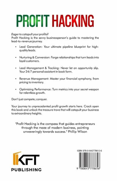 Are you an entrepreneur or business owner battling stagnating sales? Are you grappling with leads that seem to evaporate before converting? Do you feel your revenue could use a turbo boost? "Profit Hacking: Unlocking Revenue, Maximizing Profit, Get the Lead and Keep the Lead!" is the game-changing guide tailored for those who refuse to settle for mediocre profits. Whether you're an established businessperson or an ambitious start-up owner, this book is your lifeline to unlock explosive growth. In this masterfully crafted guide, you'll discover the blueprints to: - Build an impenetrable pipeline of high-caliber leads. - Cultivate relationships with laser-focused strategies that transform leads into loyal clients. - Seamlessly manage and track leads ensuring you never miss an opportunity. - Reign supreme over your revenues with tactical pricing, inventory management, and forecasting. - Use metrics and analytics as your secret arsenal for unparalleled growth. This book isn't just theory; it's a collection of battle-tested strategies and tools. What sets it apart is its no-nonsense, actionable approach that empowers you to implement effective Lead-to-Revenue Management (L2RM) strategies from Day 1. Authoritative, insightful, and packed with nuggets of wisdom, "Profit Hacking" is a trusty compass guiding you through the rough seas of the modern business landscape. You don't just learn how to make profits; you learn how to create a perpetual profit-generating machine. Who should read this book? - Entrepreneurs thirsty for scaling their ventures. - Business owners seeking to revitalize their revenue streams. - Sales and marketing professionals aspiring for peak performance. - Any driven individual committed to financial and business mastery. Don't leave your profits to the whim of fate. Take the reins and chart a course to the zenith of business success. Invest in your entrepreneurial journey today by grabbing a copy of "Profit Hacking." The key to unlocking boundless revenue and profit awaits within these pages. Your path to profits begins here.