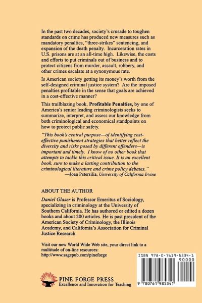 Daniel Glaser is Professor Emeritus of Sociology, specializing in criminology at the University of Southern California. He is the author or editor of a dozen books and about 200 articles and is past president of the American Society of Criminology, the Illinois Academy of Criminology, and California's Association for Criminal Justice Research.