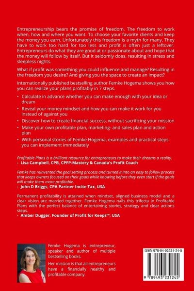 Entrepreneurship bears the promise of freedom. The freedom to work when, how and where you want. To choose your favorite clients and keep the money you earn. Unfortunately this freedom is a myth for many. They have to work too hard for too less and profit is often just a leftover. Entrepreneurs do what they are good at or passionate about and hope that the money will follow by itself. But it seldomly does, resulting in stress and sleepless nights. What if profit was something you could influence and manage? Resulting in the freedom you desire? And giving you the space to create an impact? Internationally published bestselling author Femke Hogema shows you how you can realize your plans profitably in 7 steps. · Calculate in advance whether you can make enough with your idea or dream · Reveal your money mindset and how you can make it work for you instead of against you · Discover how to create financial success, without sacrificing your mission · Make your own profitable plan, marketing- and sales plan and action plan · With personal stories of Femke Hogema, examples and practical steps you can implement immediately