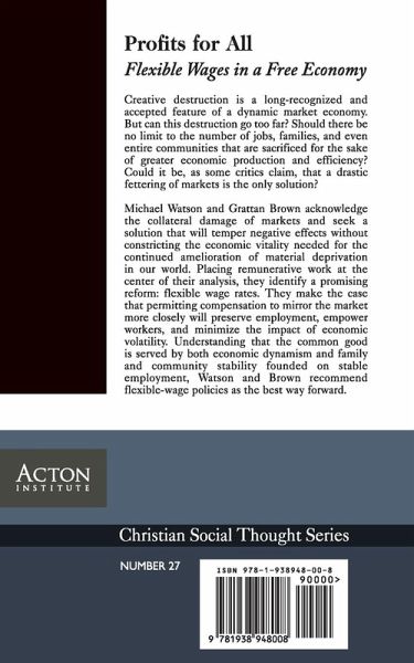 Creative destruction is a long-recognized and accepted feature of a dynamic market economy. But can this destruction go too far? Should there be no limit to the number of jobs, families, and even entire communities that are sacrificed for the sake of greater economic production and efficiency? Could it be, as some critics claim, that a drastic fettering of markets is the only solution? Michael Watson and Grattan Brown acknowledge the collateral damage of markets and seek a solution that will temper negative effects without constricting the economic vitality needed for the continued amelioration of material deprivation in our world. Placing remunerative work at the center of their analysis, they identify a promising reform: flexible wage rates. They make the case that permitting compensation to mirror the market more closely will preserve employment, empower workers, and minimize the impact of economic volatility. Understanding that the common good is served by both economic dynamism and family and community stability founded on stable employment, Watson and Brown recommend flexible-wage policies as the best way forward.