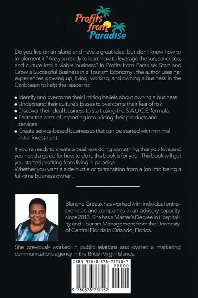 Profits from Paradise: Start and Grow a Successful Business in a Tourism Economy provides readers with the tools to go from idea to implementation. Written for the new entrepreneur, the book focuses on helping readers to master an entrepreneurial mindset by overcoming their limiting beliefs. Readers will learn how to identify and eliminate their cultural biases, how to discover the ideal business to start, how to price for profitability, and how to start service-based and digital businesses that require minimal initial investments. For readers in island economies, the book offers advice on leveraging the sun, sand, sea and culture to create viable businesses. Whether you want a side hustle, or to transition from a job into entrepreneurship, this book will help you to use the skills and assets you have to create the life that you want.