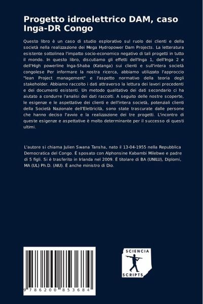 Questo libro è un caso di studio esplorativo sul ruolo dei clienti e della società nella realizzazione dei Mega Hydropower Dam Projects. La letteratura esistente sottolinea l'impatto socio-economico negativo di tali progetti in tutto il mondo. In questo libro, discutiamo gli effetti dell'Inga 1, dell'Inga 2 e dell'High powerline Inga-Shaba (Katanga) sui clienti e sull'intera società congolese Per informare la nostra ricerca, abbiamo utilizzato l'approccio "lean Project management" e l'aspetto normativo della teoria degli stakeholder. Abbiamo raccolto i dati attraverso la lettura dei lavori precedenti e dei documenti esistenti. Un metodo qualitativo dei dati secondario ci ha aiutato a condurre l'analisi dei dati raccolti. A seguito delle nostre scoperte, le esigenze e le aspettative dei clienti e dell'intera società, potenziali clienti della Società Nazionale dell'Elettricità, sono state trascurate dalle persone che hanno deciso l'avvio e la realizzazione dei tre progetti. L'incontro di queste esigenze e aspettative è molto determinante per il successo di questi ultimi.