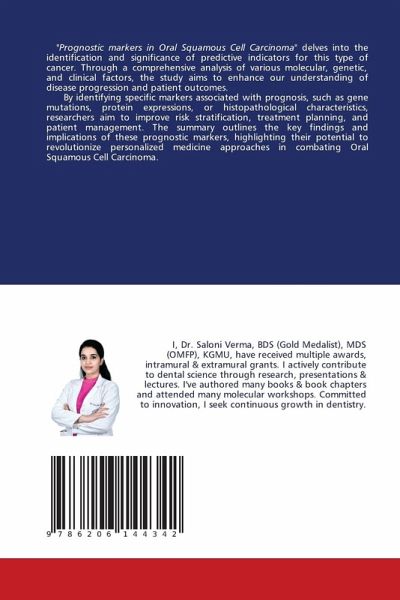 "Prognostic markers in Oral Squamous Cell Carcinoma" delves into the identification and significance of predictive indicators for this type of cancer. Through a comprehensive analysis of various molecular, genetic, and clinical factors, the study aims to enhance our understanding of disease progression and patient outcomes. By identifying specific markers associated with prognosis, such as gene mutations, protein expressions, or histopathological characteristics, researchers aim to improve risk stratification, treatment planning, and patient management. The summary outlines the key findings and implications of these prognostic markers, highlighting their potential to revolutionize personalized medicine approaches in combating Oral Squamous Cell Carcinoma.