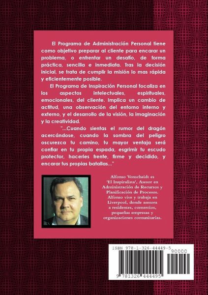 El programa 'El Inspiralista' permite reconocer, enfrentar y superar, problemas y desafíos, de la vida cotidiana, así como inspirar, planificar, programar, y ejecutar, tus ideas, proyectos, y sueños. 'El Inspiralista' maximiza los recursos, y optimiza los procesos, de tu vida personal y profesional, a través de la efectiva administración de tus recursos, y el planeamiento de tu creatividad y desarrollo. El Programa de Administración Personal tiene como objetivo preparar al cliente para encarar un problema, o afrontar un desafío, de forma práctica, sencilla e inmediata. Tras la decisión inicial, y la aceptación de las reglas del juego, el objetivo es cumplir la misión lo mas rápida y eficientemente posible. El Programa de Inspiración Personal focaliza en los aspectos intelectuales, espirituales, emocionales, del cliente. Implica un cambio de actitud, una observación cuidadosa del entorno interno y externo, y el desarrollo de la visión, la imaginación y la creatividad.