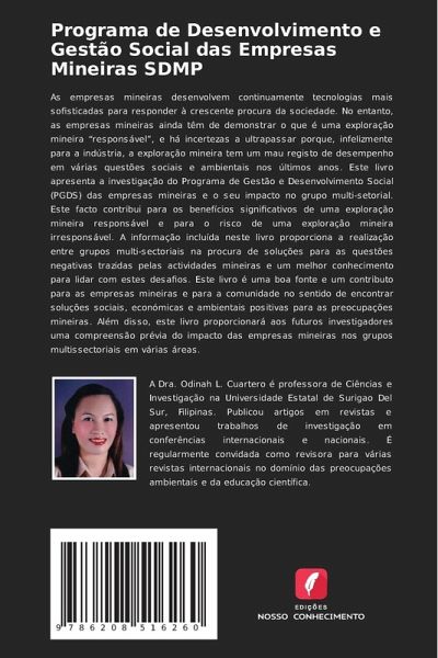 As empresas mineiras desenvolvem continuamente tecnologias mais sofisticadas para responder à crescente procura da sociedade. No entanto, as empresas mineiras ainda têm de demonstrar o que é uma exploração mineira "responsável", e há incertezas a ultrapassar porque, infelizmente para a indústria, a exploração mineira tem um mau registo de desempenho em várias questões sociais e ambientais nos últimos anos. Este livro apresenta a investigação do Programa de Gestão e Desenvolvimento Social (PGDS) das empresas mineiras e o seu impacto no grupo multi-setorial. Este facto contribui para os benefícios significativos de uma exploração mineira responsável e para o risco de uma exploração mineira irresponsável. A informação incluída neste livro proporciona a realização entre grupos multi-sectoriais na procura de soluções para as questões negativas trazidas pelas actividades mineiras e um melhor conhecimento para lidar com estes desafios. Este livro é uma boa fonte e um contributo para as empresas mineiras e para a comunidade no sentido de encontrar soluções sociais, económicas e ambientais positivas para as preocupações mineiras. Além disso, este livro proporcionará aos futuros investigadores uma compreensão prévia do impacto das empresas mineiras nos grupos multissectoriais em várias áreas.