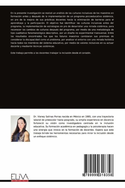 En la presente investigación se realizó un análisis de las culturas inclusivas de los maestros en formación antes y después de la implementación de un programa psicoeducativo sistémico, en pro de la mejora de sus prácticas docentes hacía la eliminación de barreras para el aprendizaje y la participación. El objetivo fue identificar las culturas inclusivas antes del programa, la implementación de estrategias en pro de desarrollar una mirada sistémica, para reconocer los cambios de culturas después del programa, por medio de una metodología de tipo cualitativo fenomenológico descriptivo, por un diseño no experimental transversal, Entre los resultados encontrados fue que los futuros maestros cambiaron sus premisas de considerar la discapacidad como el problema, por analizar el entorno con una mirada holística hacía todos los miembros del sistema educativo, por medio de valores inclusivos en su actuar docente y mediante técnicas sistémicas. Este trabajo permite a los docentes trabajar la inclusión desde el corazón.