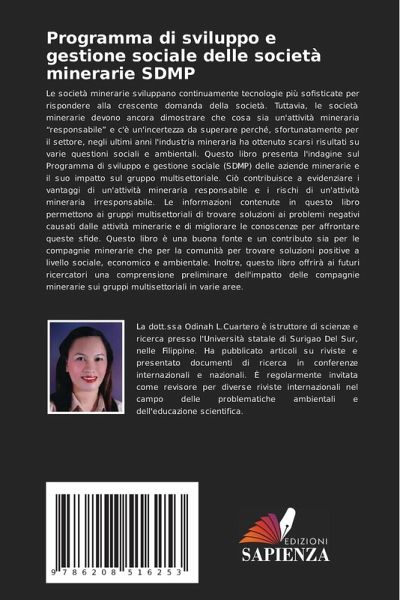 Le società minerarie sviluppano continuamente tecnologie più sofisticate per rispondere alla crescente domanda della società. Tuttavia, le società minerarie devono ancora dimostrare che cosa sia un'attività mineraria "responsabile" e c'è un'incertezza da superare perché, sfortunatamente per il settore, negli ultimi anni l'industria mineraria ha ottenuto scarsi risultati su varie questioni sociali e ambientali. Questo libro presenta l'indagine sul Programma di sviluppo e gestione sociale (SDMP) delle aziende minerarie e il suo impatto sul gruppo multisettoriale. Ciò contribuisce a evidenziare i vantaggi di un'attività mineraria responsabile e i rischi di un'attività mineraria irresponsabile. Le informazioni contenute in questo libro permettono ai gruppi multisettoriali di trovare soluzioni ai problemi negativi causati dalle attività minerarie e di migliorare le conoscenze per affrontare queste sfide. Questo libro è una buona fonte e un contributo sia per le compagnie minerarie che per la comunità per trovare soluzioni positive a livello sociale, economico e ambientale. Inoltre, questo libro offrirà ai futuri ricercatori una comprensione preliminare dell'impatto delle compagnie minerarie sui gruppi multisettoriali in varie aree.