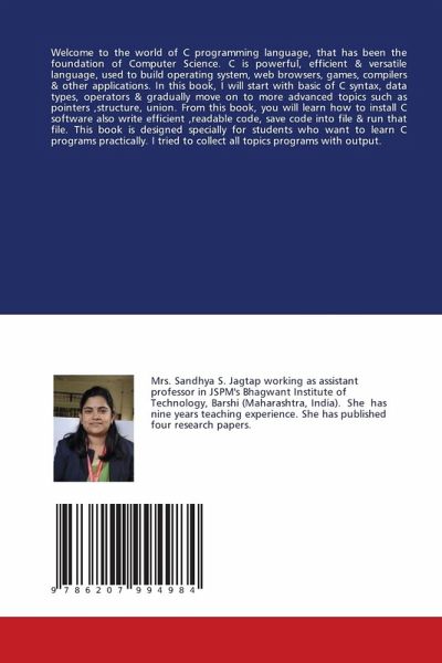Welcome to the world of C programming language, that has been the foundation of Computer Science. C is powerful, efficient & versatile language, used to build operating system, web browsers, games, compilers & other applications. In this book, I will start with basic of C syntax, data types, operators & gradually move on to more advanced topics such as pointers ,structure, union. From this book, you will learn how to install C software also write efficient ,readable code, save code into file & run that file. This book is designed specially for students who want to learn C programs practically. I tried to collect all topics programs with output.