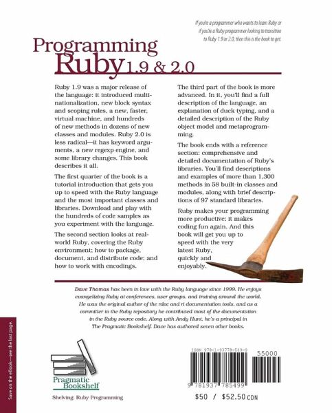 This book is the only complete reference for both Ruby 1.9 and Ruby 2.0, the very latest version of Ruby.