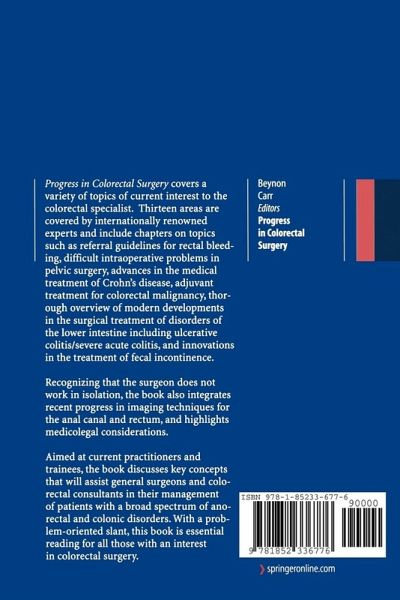 Progress in Colorectal Surgery covers a variety of topics of current interest to the colorectal specialist. Thirteen areas are covered by internationally renowned experts and include chapters on topics such as referral guidelines for rectal bleeding, difficult intra-operative problems in pelvic surgery, advances in the medical treatment of Crohn's disease, adjuvant treatment for colorectal malignancy, thorough overview of modern developments in the surgical treatment of disorders of the lower intestine including ulcerative colitis/severe acute colitis and innovations in the treatment of fecal incontinence.
