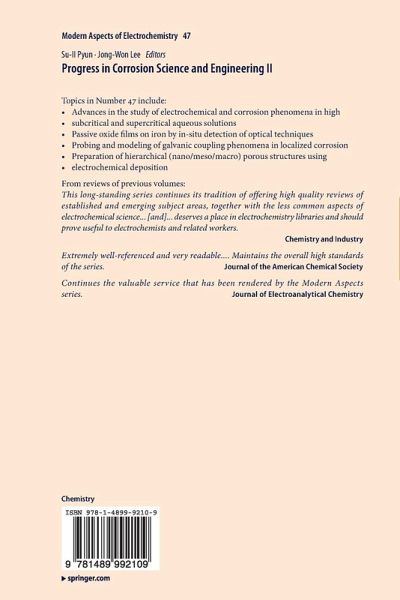 This and volume no. 47 of Modern Aspects of Electrochemistry is composed of eight chapters covering topics having relevance both in corrosion science and materials engineering. In particular, the first seven chapters provide comprehensive coverage of recent advances in corrosion science.