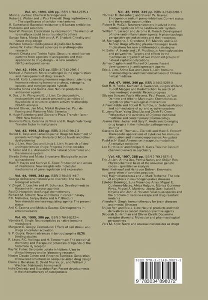5-Hydroxytryptamine (5-HT)4 receptors and central nervous system function: An update.- Chemical teratogenesis in humans: Biochemical and molecular mechanisms.- Recent advances in potassium channel modulation.- Neuronal prostacyclin receptors.- Effects of NSAIDs on the kidney.- G protein coupled receptors as modules of interacting proteins: A family meeting.- Antifungal therapy, an everlasting battle.- Index · Sachverzeichnis · Table des matières, vol. 49.- Index of titles · Verzeichnis der Titel · Index des titres vol. 1-49.- Author and paper index · Autoren- und Artikelindex · Index des auteurs et des articles, vol. 1-49.