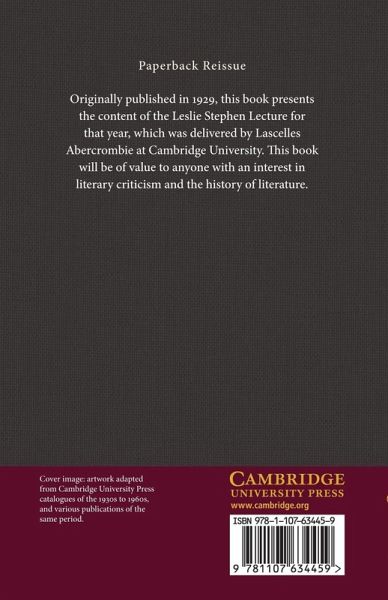 Originally published in 1929, this book presents the content of the Leslie Stephen Lecture for that year, which was delivered by Lascelles Abercrombie at Cambridge University. This book will be of value to anyone with an interest in literary criticism and the history of literature.