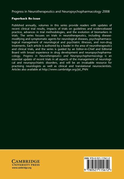 Published annually, volumes in this series provide readers with updates of recent clinical trial results, impacts of trials on guidelines and evidence-based practice, advances in trial methodologies, and the evolution of biomarkers in trials. The series focuses on trials in neurotherapeutics, including disease-modifying and symptomatic agents for neurological diseases, psychopharmacological management of neurologic and psychiatric illnesses, and non-drug treatments. Each paper is authored by a leader in the area of neurotherapeutics and clinical trials, and the series is guided by an editor-in-chief and editorial board with broad experience in drug development and neuropsychopharmacology. Progress in Neurotherapeutics and Neuropsychopharmacology is an essential update of recent trials in all aspects of the management of neurologic and neuropsychiatric disorders, and will be an invaluable resource for practising neurologists as well as clinical and translational neuroscientists.