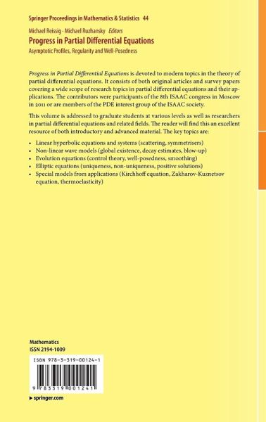 Progress in Partial Differential Equations is devoted to modern topics in the theory of partial differential equations. It consists of both original articles and survey papers covering a wide scope of research topics in partial differential equations and their applications. The contributors were participants of the 8th ISAAC congress in Moscow in 2011 or are members of the PDE interest group of the ISAAC society.
