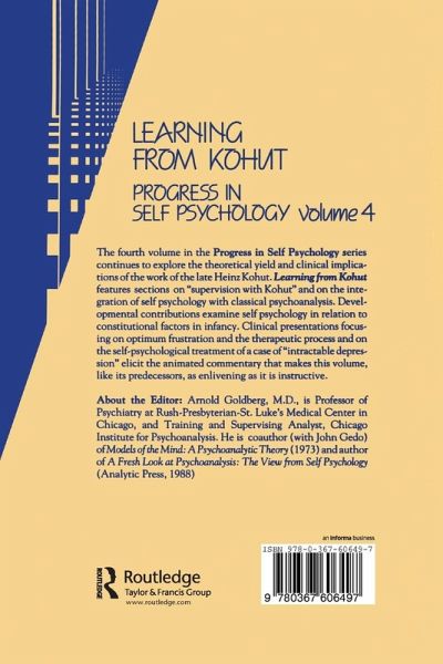 Volume 4 features sections on supervision with Kohut (R. Galatzer-Levy, S. Meyers) and on the integration of self psychology with classical psychoanalysis (R. Stolorow, M. & E. Shane. Developmental contributions examine self psychology in relation to