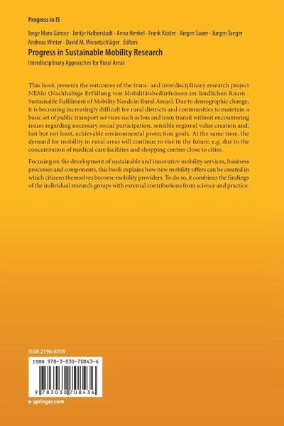This book presents the outcomes of the trans- and interdisciplinary research project NEMo (Nachhaltige Erfüllung von Mobilitätsbedürfnissen im ländlichen Raum - Sustainable Fulfilment of Mobility Needs in Rural Areas). Due to demographic change, it is becoming increasingly difficult for rural districts and communities to maintain a basic set of public transport services such as bus and train transit without encountering issues regarding necessary social participation, sensible regional value creation and, last but not least, achievable environmental protection goals. At the same time, the demand for mobility in rural areas will continue to rise in the future, e.g. due to the concentration of medical care facilities and shopping centres close to cities.