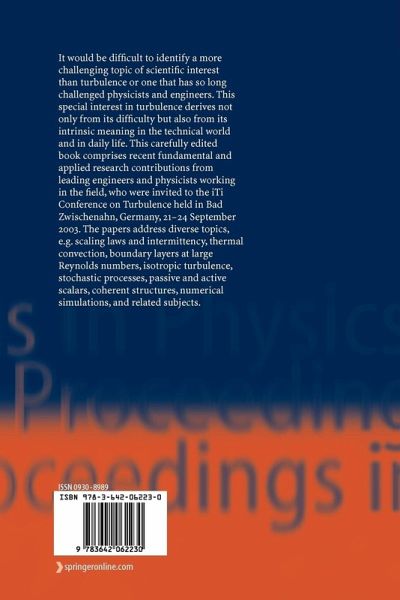Besides turbulence, there is hardly any other scientific topic which has been considered a prominent scientific challenge for such a long time. The special interest in turbulence is not only based on it being a difficult scientific problem but also on its meaning in the technical world and our daily life. This carefully edited book comprises recent basic research as well as research related to the applications of turbulence. Therefore, both leading engineers and physicists working in the field of turbulence were invited to the iTi Conference on Turbulence held in Bad Zwischenahn, Gemany 21st - 24th of September 2003. Topics discussed include, for example, scaling laws and intermittency, thermal convection, boundary layers at large Reynolds numbers, isotropic turbulence, stochastic processes, passive and active scalars, coherent structures, numerical simulations, and related subjects.