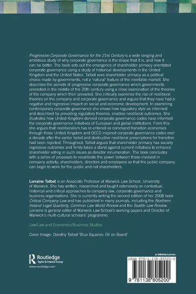 Introduction 1. Progressive Thought and the Historical Emergence of the Company in England 1770-1900 2. Corporate Governance in the United Kingdom in the Twentieth Century including a period of Progressive Governance 3. The United States and Progressive Governance: The Historical Development of the American Corporation 1790-1944 4. The Managerialists' Progressive Corporation and the Rise of Neo-Liberal Corporate Governance 5. The Retreat from Progress: Modern Corporate Governance, Substance and Form 6. The March to anti-progressiveness: Neo-Liberalism and Transition Economies 7. Conclusion: And in Conclusion: Towards a Progressive Corporate Governance