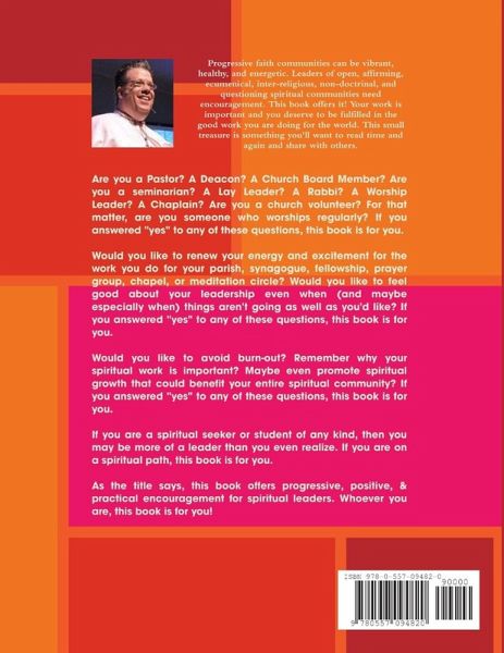 This is a book that will encourage leaders of progressive, inclusive spiritual communities. As the title says, the teachings are progressive, positive, and practical. This is a book meant to help liberal, open, and affirming worshipping communities thrive by encouraging their leaders.