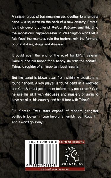 A sinister group of businessmen get together to arrange a cartel - a squeeze on the neck of a new country, Eritrea. It's their second strike at Project Babylon, and this time the monstrous puppet-master in Washington won't let it fail: flood the markets, ruin the traders, ruin the farmers, pour in dollars, drugs and disease... It could spell the end of the road for EPLF veteran Samuel and his hopes for a happy life with the beautiful Tsinat, daughter of an important businessman. But the cartel is blown apart from within. A prostitute is found hanged. A key player is found dead in a wrecked car. Can Samuel get to them before they get to him? Can he use his skill with disguises and mastery of arms to save his skin, his country and his future with Tsinat? Dr. Kibreab Fre's stark exposé of modern gangster politics is topical, in your face and horribly real. Read it - and it won't go away!