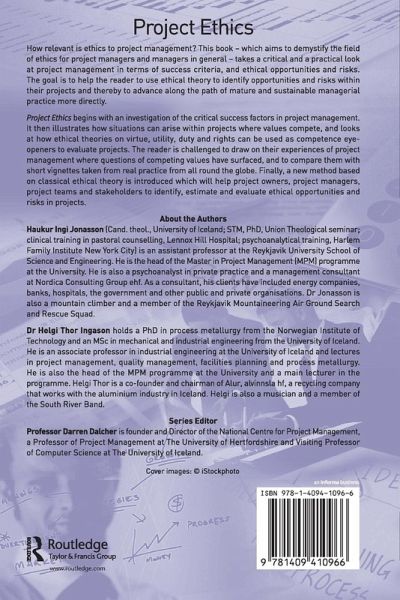 Contents: Introduction The critical path of project ethics Outcome-oriented ethics: virtue ethics Outcome-oriented ethics: utility ethics Process-oriented project ethics: duty ethics Process-oriented project ethics: rights ethics Project evaluation and (ethical) risks Conclusions References Index.