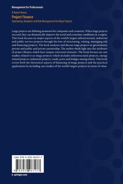 Large projects are defining moments for companies and countries. When large projects succeed, they can dramatically improve the social and economic conditions in a region. This book focuses on major aspects of the world's largest infrastructural, industrial and public service projects through the lens of structuring, valuing, managing risk and financing projects. The book analyses and discuss large projects in government, private and public and private partnership. The author sheds light into the attributes of project finance which have unique structural elements. The book focuses on case studies related to 50 mega projects which includes infrastructural projects, energy related projects, industrial projects, roads, ports and bridges among others. This book covers both the theoretical aspects of financing of mega projects and the practical applications by including case studies of the world's largest projects in terms of value.
