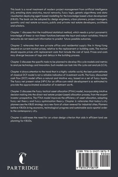 This book is a novel treatment of modern project management from artificial intelligence (AI), entailing data analytics, neural networks, fuzzy logic, genetic algorithms; and data visualisation deploying agent based modelling for the knowledge based urban development (KBUD). The book can be adopted by design engineers, urban planners, project managers, quantity and real estate surveyors, public and private real estate developers, architects and scholars. Chapter 1 discusses that the traditional statistical method, which needs a priori parametric knowledge of linear or non-linear functions between the input and output variables. Nneural networks do not need such information to predict future possible outcomes. Chapter 2 reiterates that new private office and residential supply like in Hong Kong depend on current market prices, relative to the replacement or building costs. The market should equate prices with replacement costs that include the cost of land. Prices and costs may diverge because of lags and delays in the building process. Chapter 3 discusses the specific tasks to be planned to develop life cycle models and metrics to analyse technology and innovation. Such models can look into life cycle cost analysis (LCA). Chapter 4 draws attention to the trend that in a highly volatile world, the best point estimate of classical DCF model is not a reliable indication of investment worth. The fuzzy discounted cash flow (DCF) model offers a natural and intuitive way, based on a set of fuzzy inputs. The fuzzy net present value (NPV) for an office-cum-retail development is so estimated to provide the approximated evaluation of investment worth. Chapter 5 discusses the fuzzy tactical asset allocation (FTAA) model, incorporating intuitive decision making into the direct real estate project (asset) allocation process, from the expert investor prospective. The FTAA model improves the efficiency of asset allocation, adopting fuzzy set theory and fuzzy optimization theory. Chapter 6 reiterates that today's city planners see the KBUD strategy as a new form of urban renewal for industrial cities. Planners believe KBUDs bring economic, technological progress and sustainable socio-spatial order to the contemporary city. Chapter 6 addresses the need for an urban design criterion that aids in efficient land use planning for KBUDs.
