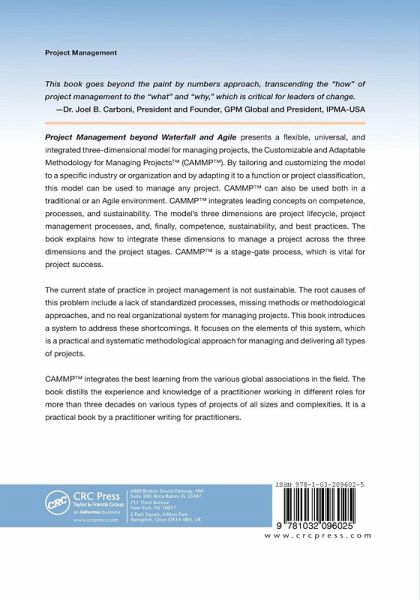 Project Management beyond Waterfall and Agile presents a flexible, universal, and integrated three-dimensional model for managing projects, the Customizable and Adaptable Methodology for Managing Projects(TM) (CAMMP(TM) ). By tailoring and customizing the model to a specific industry or organization and by adapting it to a function or project classification, this model can be used to manage any project. CAMMP(TM) can also be used both in a traditional or an Agile environment. CAMMP(TM) integrates leading concepts on competence, processes, and sustainability. The model's three dimensions are project lifecycle, project management processes, and, finally, competence, sustainability, and best practices. The book explains how to integrate these dimensions to manage a project across the three dimensions and the project stages. CAMMP(TM) is a stage-gate process, which is vital for project success.