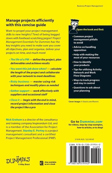 Learn to: * Master the project management basics * Take charge and steer your projects to success * Plan, execute and deliver your projects with confidence Manage projects efficiently with this concise guide Want to propel your project management skills to new heights? Tired of being bogged down with forehead-scratching jargon? Project Management Essentials For Dummies has the key insights you need to make sure you cover all objectives, plan and organise, deliver your projects on time, and much more! * The life of a PM -- define the project, plan deliverables and achieve results * You want this job done when? -- calculate the length of the project and collaborate with your network to meet deadlines * Risky business -- master using risk techniques and modify plans as needed * Gather support -- work effectively with suppliers and occasional staff * Close it -- begin with the end in mind, record project information and close the project like a pro Open the book and find: * Common project management pitfalls to avoid * Advice on handling opposition * Help with making the most of your resources * How to identify your products * Tips for utilising Activity Network and Work Flow Diagrams * Ways to track progress and stay in control * Questions to ask about your planning