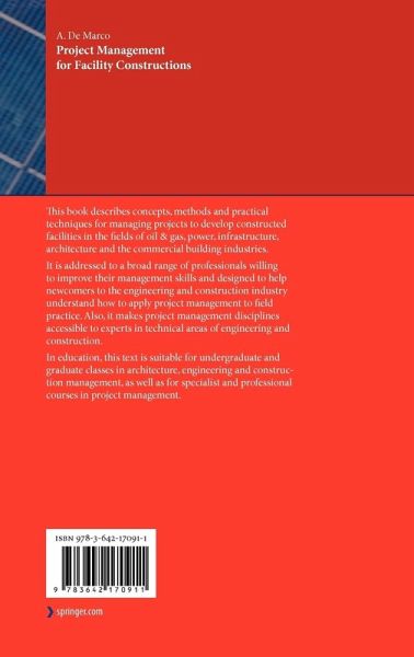 It is addressed to a broad range of professionals willing to improve their management skills and designed to help newcomers to the engineering and construction industry understand how to apply project management to field practice. Also, it makes project management disciplines accessible to experts in technical areas of engineering and construction.