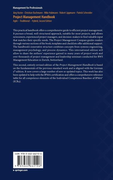 This practical handbook offers a comprehensive guide to efficient project management. It pursues a broad, well-structured approach, suitable for most projects, and allows newcomers, experienced project managers, and decision-makers to find valuable input that matches their specific needs. The Project Management Compass guides readers through various sections of the book; templates and checklists offer additional support. The handbook's innovative structure combines concepts from systems engineering, management psychology, and process dynamics. This international edition will allow sharing of the authors' experience gained in many years of project work and over thousands of project management and leadership seminars conducted for BWI Management Education in Zurich, Switzerland.