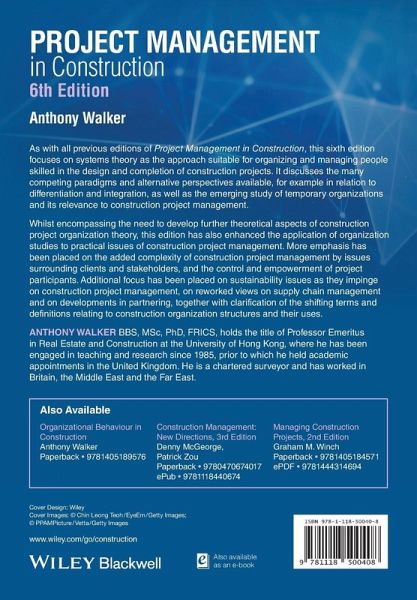 As with all previous editions of Project Management in Construction, this sixth edition focuses on systems theory as the approach suitable for organizing and managing people skilled in the design and completion of construction projects. It discusses the many competing paradigms and alternative perspectives available, for example in relation to differentiation and integration, as well as the emerging study of temporary organizations and its relevance to construction project management.