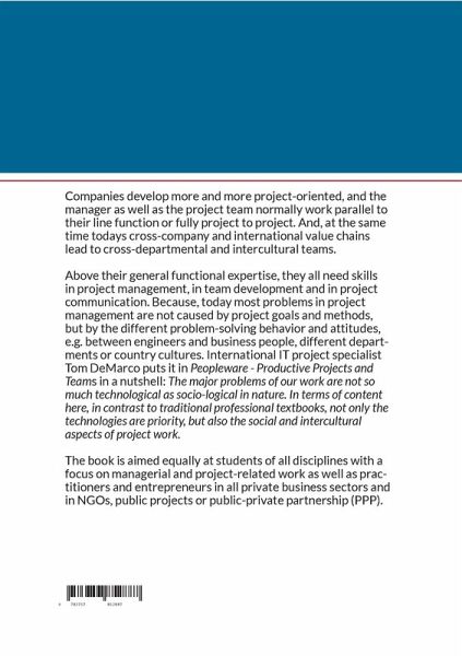 Companies are increasingly developing into dynamic and project-oriented organizations. Globalization, innovations and organizational dynamics require more and more projects, and thus a more project-oriented corporate organization and management. As a rule, managers as well as employees already work parallel to their line function in projects or completely from project to project.At the same time, cross-company and especially international value chains lead to the cooperation of cross-departamental and intercultural teams. For this, the specialists and executives need above all knowledge and experience in project management and the corresponding concepts as well as in the special form of cooperation, team development and communication. Because the most problems in project management are not caused by project goals and methods, but by the many different problem-solving behavior and attitudes, e.g. between engineers and business people, different departments or the different countrycultures. The international IT project specialist Tom DeMarco puts it in a nutshell (in Peopleware - Productive Projects and Teams: The major problems of our work are not so much technological as socio-logical in nature. In terms of content here, in contrast to traditional professional textbooks, not only the technologies are priority, but also the social and intercultural aspects of project work.The book is aimed equally at students of all disciplines with a focus on managerial and project-related work as well as practitioners and entrepreneurs in all private business sectors as well as in NGOs, public projects or PPPs as public-private partnership.
