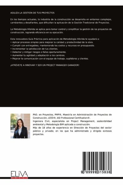 AGILIZA LA GESTIÓN DE TUS PROYECTOS En los tiempos actuales, la industria de la construcción se desarrolla en entornos complejos, cambiantes y desafiantes, que dificultan la aplicación de la Gestión Tradicional de Proyectos. La Metodología Híbrida se aplica para tomar control y simplificar la gestión de los proyectos de construcción, logrando eficiencia en su ejecución. Esta innovadora Guía Práctica para aplicación de Metodología Híbrida te ayudará a: ¿ Aplicar procesos simples para mejorar la calidad y productividad de la obra. ¿ Cumplir con entregables, manteniendo los costos y recursos en presupuesto. ¿ Incrementar la satisfacción de tus clientes. ¿ Detectar y mitigar riesgos o fallas oportunamente. ¿ Aumentar tu agilidad y adaptación a los cambios. ¿ Mejorar la comunicación con el equipo de trabajo, suplidores y clientes. ¡ATRÉVETE A INNOVAR Y SER UN PROJECT MANAGER GANADOR!