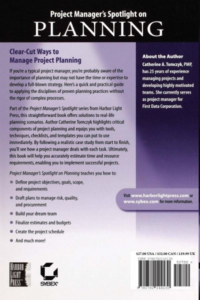 Part of the Project Manager's Spotlight series from Harbor Light Press, this straightforward book offers solutions to real-life planning scenarios. Author Catherine Tomczyk highlights critical components of project planning and equips you with tools, techniques, checklists, and templates you can put to use immediately. By following a realistic case study from start to finish, you'll see how a project manager deals with each task. Ultimately, this book will help you accurately estimate time and resource requirements, enabling you to implement successful projects.