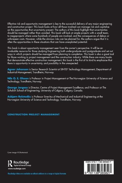 This book is about opportunity management seen from the owner's perspective. It will be an invaluable resource for those studying Engineering both undergraduate and postgraduate and set out ways in which projects should be managed from planning to completion.