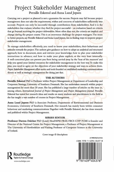 Carrying out a project as planned is not a guarantee for success. Projects may fail because project management does not take the requirements, wishes and concerns of stakeholders sufficiently into account. Projects can only be successful through contributions from stakeholders. And it is the stakeholders that evaluate whether they find the project successful - an evaluation based on criteria that go beyond receiving the project deliverables. More often than not, the criteria are implicit and change during the project course. This is an enormous challenge for project managers. The route to better projects, say Pernille Eskerod and Anna Lund Jepsen, lies in finding ways to improve project stakeholder management. To manage stakeholders effectively, you need to know your stakeholders, their behaviours and attitudes towards the project. The authors give guidance on how to adopt an analytical and structured approach; how to document, store and retrieve your knowledge; how to plan your stakeholder interactions in advance; and how to make your plans explicit, at the very least internally. A well-conceived plan can prevent you from being carried away in the 'heat of the moment' and help you spend your limited resources for stakeholder management in the best way. To make this plan, you need to agree on the objectives of your stakeholder strategy and ways to achieve them. Project Stakeholder Management offers tactics and tools founded on established marketing communications theory as well as strategic management for doing just that. This book is part of Gower's Fundamentals of Project Management Series.