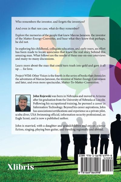 Who remembers the inventor, and forgets the invention? And even in that rare case, what do they remember? Explore the memories of the people that knew Marcus Jameson, the inventor of the Matter-Energy-Converter, and hear what they knew that perhaps, he did not. In exploring his childhood, collegiate education, and early years, an effort has been made to locate associates that knew the real story behind this amazing man. What follows are the results of these one-on-one interviews and many-to-many discussions. Learn more about the man that could turn trash into gold and gave it all up ... for love. Project WIM: Other Voices is the fourth in the series of books that chronicles the adventures of Marcus Jameson, the inventor of Matter-Energy-Conversion and later, and even more spectacular, Matter-To-Matter-Conversion.