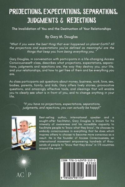 "What if you were the best thing that ever happened on planet Earth? All the projections and expectations you’ve defined as meaningful are the things that keep you from being everything you are." Gary Douglas, in conversation with participants in a life-changing Access Consciousness® class, describes what projections, expectations, separations, judgments, and rejections are, the way they destroy you, your life, and your relationships, and how to get free of them and be everything you are. As class participants ask questions about money, business, work, love, sex, bodies, parents, family, and kids, Gary offers lively stories, provocative questions, and amazingly effective tools, and clearings that will enable you to clearly see what is in front of you, and to change anything in your life. "If you have no projections, expectations, separations, judgments, and rejections, you can actually be happy!"