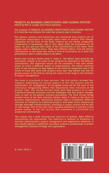 The purpose of Projects as Business Constituents and Guiding Motives is to describe and analyse the roles that projects play in business. The editors, authors and researchers are convinced that projects are of significant importance at virtually every level of society, even though companies are the focus of this book. Projects are not merely conspicuous components of businesses, they in fact signal what businesses are all about. As you will see from some of the contributions to this book, these signals come in different forms and have different effects. Thus the various contributions to this…mehr