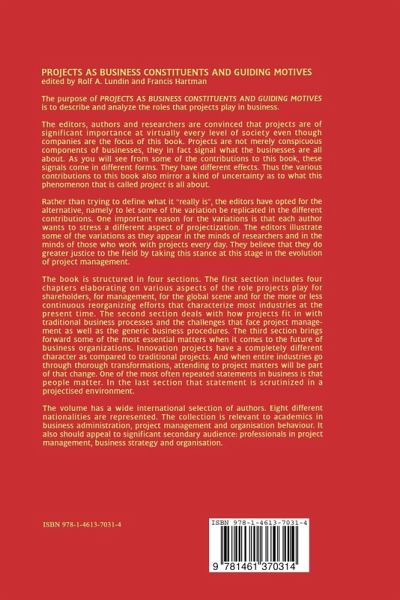 This volume has a wide international selection of authors. Eight different nationalities are represented. The collection is relevant to academics in business administration, project management and organisation behaviour. It should also appeal to a significant secondary audience: professionals in project management, business strategy and organisation.