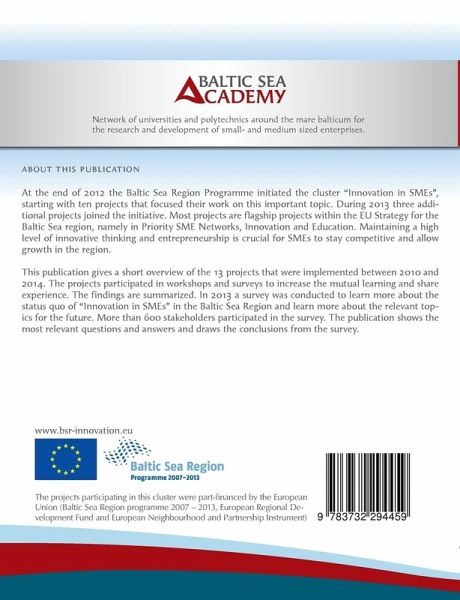 At the end of 2012 the Baltic Sea Region Programme initiated the cluster "Innovation in SMEs", starting with ten projects that focused their work on this important topic. During 2013 three additional projects joined the initiative. Most projects are flagship projects within the EU Strategy for the Baltic Sea region, namely in Priority SME Networks, Innovation and Education. Maintaining a high level of innovative thinking and entrepreneurship is crucial for SMEs to stay competitive and allow growth in the region. This publication gives an short overview of the 13 projects that were implemented between 2010 and 2014. The projects participated in workshops and surveys to increase the mutual learning and share experience. The findings are summarized. In 2013 a survey was conducted to learn more about the status quo of "Innovation in SMEs" in the Baltic Sea Region and learn more about the relevant topics for the future. More than 600 stakeholders participated in the survey. The publication shows the most relevant questions and answers and draws the conclusions from the survey.