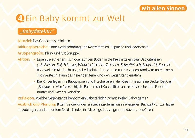 Rund ums Baby - das ist ein klassisches und zugleich faszinierendes Thema für Kita-Kinder. Regina Bestle-Körfer präsentiert 32 vollständig ausgearbeitete Projektideen zu den Themenfeldern "Meine Familie & ich", "Tierbabys", "Ein Baby kommt zur Welt" und "Was Babys alles können". Impulse zum Projekteinstieg und -abschluss helfen bei der Umsetzung in die Praxis, ebenso wie die liebevollen Zeichnungen des bekannten Kinderbuchillustrators Hans-Günther Döring.