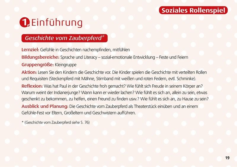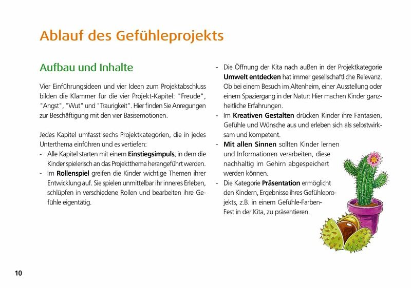 32 praxiserprobte und spielerische Projektideen zum Thema Gefühle, die sich einfach in der Kita umsetzen lassen. Ob Freude, Wut, Angst oder Traurigkeit: Die vier Basisemotionen werden in vielfältigen und kindgerechten Impulsen, mittels Rollenspiel, kreativen Gestaltungsideen, Übungen für alle Sinne oder Impulsen für Projekteinstieg und -abschluss, präsentiert. Gefühle für Kita-Kinder begreifbar machen! Jetzt im attraktiven Buchformat: Einfach aufschlagen und loslegen!