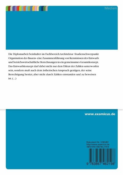 Diplomarbeit aus dem Jahr 1999 im Fachbereich Kunst - Architektur, Baugeschichte, Denkmalpflege, Note: 1.3, Technische Hochschule Köln, ehem. Fachhochschule Köln, Sprache: Deutsch, Abstract: Die Diplomarbeit beinhaltet im Fachbereich Architektur -Studienschwerpunkt Organisation des Bauens- eine Zusammenführung von Kenntnissen des Entwurfs und betriebswirtschaftliche Berechnungen in ein gemeinsames Gesamtkonzept. Das Entwurfskonzept darf dabei nicht nur dem Diktat der Zahlen unterworfen sein, sondern muß auch dem ästhetischen Anspruch genügen, der seine Berechtigung besitzt, aber nicht durch Zahlen entstanden und zu beweisen ist. Den Mittelweg zu finden für eine ganzheitliche Lösung ist das Ziel.Die Projektentwicklung spielt eine realistische Situation nach, die Zwischenentscheidungen benötigt, um Schritt für Schritt die Immobilie zu entwickeln. Empfehlungen an den Investor von seiten des Projektentwicklers sollen eine Entscheidungshilfe sein, das Konzept abzusichern oder auch zu revidieren.Vorgehensweise:Erstellen einer Marktanalyse:-Erstellen einer Standortanalyse auf der Grundlage der Marktanalyse,-Erarbeiten alternativer Entwurfskonzeptionen,-Darstellung der städtebaulichen Situation des gewählten Standortes, Einordnen des Entwurfkonzeptes,-Grundrisse, Ansichten und Schnitt M 1:200,-Darstellung und Beschreibung von Musterbüros im M 1:20,-Beschreibung der Roh-, Ausbau- und Techniksysteme als Grundlage für die Kostenermittlung,-Flächennachweis nach DIN 277,-Erstellen der Kostenermittlung nach DIN 276.Erarbeiten von Wirtschaftlichkeits- / Renditeberechnung auf der Grundlage prognostizierter Einnahmen als Entscheidungsvorlage für die Investition:-Ertragswertverfahren,-Nutzwertanalyse,-Zusammenfassung und Wertung der relevanten Ergebnisse und Erkenntnisse.Die Diplomarbeit ist mit einer Anerkennung des Fachbereichs Architektur ausgezeichnet worden.