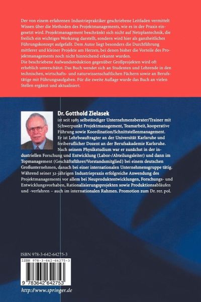 Der von einem erfahrenen Industriepraktiker geschriebene Leitfaden vermittelt Wissen über die Methoden des Projektmanagements, wie es in der Praxis eingesetzt wird. Projektmanagement beschränkt sich nicht auf Netzplantechnik, die freilich ein wichtiges Werkzeug darstellt, sondern wird hier als ganzheitliches Führungskonzept aufgefaßt. Dem Autor liegt besonders die Durchführung mittlerer und kleiner Projekte am Herzen, bei denen bisher die Vorteile des Projektmanagements noch nicht hinreichend erkannt wurden. Die beschriebene Aufwandsreduktion gegenüber Großprojekten wird oft erheblich unterschätzt. Das Buch wendet sich an Studenten und Lehrende in den technischen, wirtschafts- und naturwissenschaftlichen Fächern sowie an Berufstätige mit Führungsaufgaben. Für die zweite Auflage wurde das Buch an vielen Stellen ergänzt und aktualisiert.