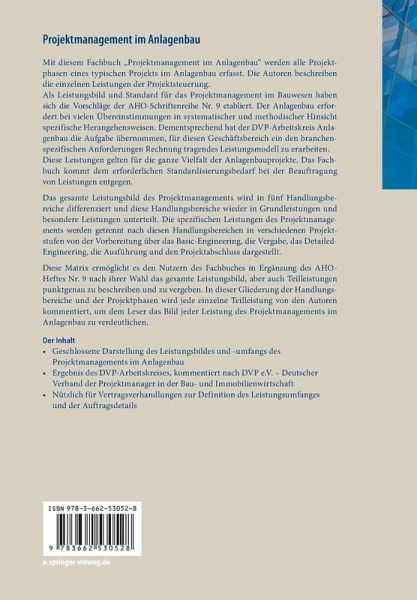 Als Leistungsbild und Standard für das Projektmanagement im Bauwesen haben sich die Vorschläge der AHO-Schriftenreihe Nr. 9 etabliert. Der Anlagenbau erfordert bei vielen Übereinstimmungen in systematischer und methodischer Hinsicht spezifische Herangehensweisen. Dementsprechend hat der DVP-Arbeitskreis Anlagenbau die Aufgabe übernommen, für diesen Geschäftsbereich ein den branchenspezifischen Anforderungen Rechnung tragendes Leistungsmodell zu erarbeiten.